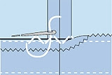 ORLO RIPIEGATO: Può essere utilizzato per l'allungamento di pantaloni.Preparare la striscia di tessuto da utilizzare ad altezza desiderata, appoggiare sul diritto della stoffa, imbastire ed eseguire a macchina una cucitura distante un centimetro del bordo (fig 1), poi proseguire aprendo la cucitura, stirare, risvoltare la striscia del l'orlo al rovescio, imbastire, ed infine cucire con un punto nascosto (fig 2). Questo tipo di orlo può essere fatto anche per i jeans utilizzando il punto a macchina(fig 3).